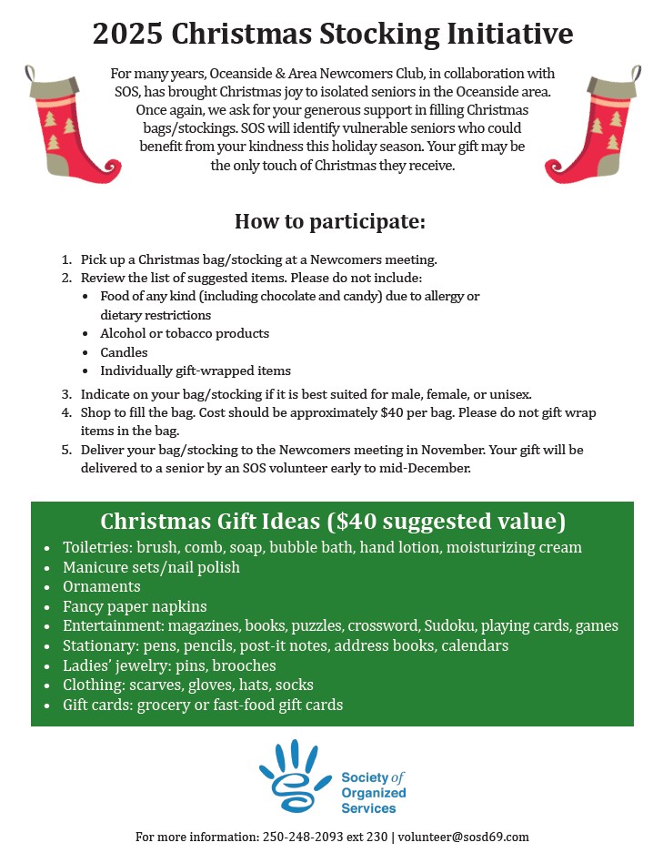 October- December SOS Christmas Stocking Initiative